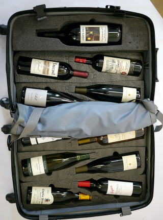 | Home > ワイン専用スーツケース―海外で買ったワインを破損させずに持ち帰る 【アメリカ】 2015年8月31日 海外でお気に入りのワインを買って一緒に持ち帰りたいが、ボトルが割れないか心配。そんな経験はないだろうか。そんな方のためにVinGardeValiseという、ワインを運ぶための専用のスーツケースが発売されている。 このワイン専用のスーツケースは、外界からのショックに耐える素材の中にワインが1本1本収まるローリングタイプのハードシェル型のスーツケース。重さは750mlのワインを12本入れた状態で20kg。